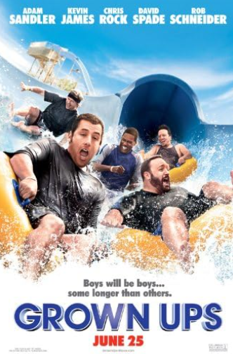 Grown Ups is a 2010 American comedy movie with Adam Sandler, Kevin James, Chris Rock, David Spade, and Rob Schneider in it. The movie is about five friends who have known each other since junior high school and won their basketball championship in 1978. They get back together for a 4th of July weekend thirty years later after hearing about the death of their old coach.